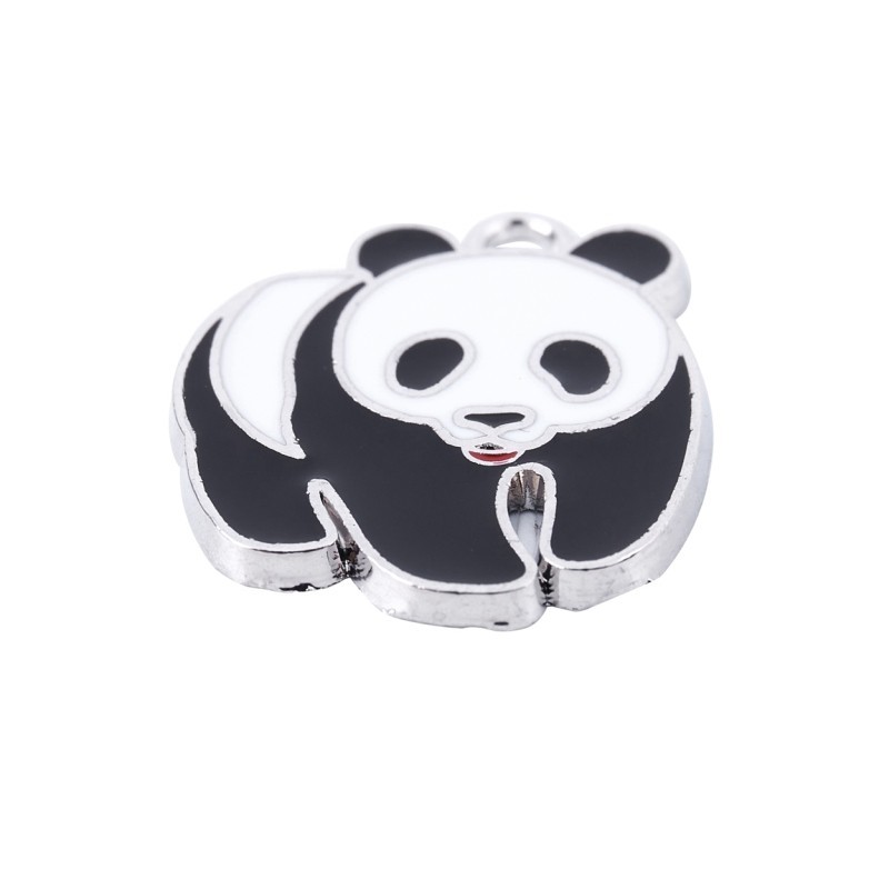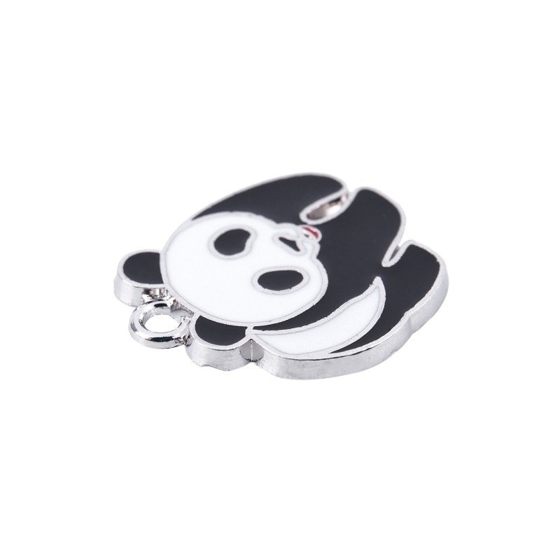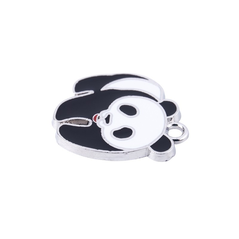 10Pcs Silver Tone Enamel Panda Charms Pendants 23x20mm F4Z7