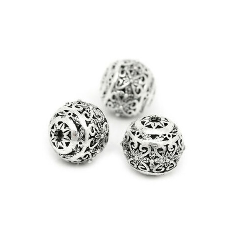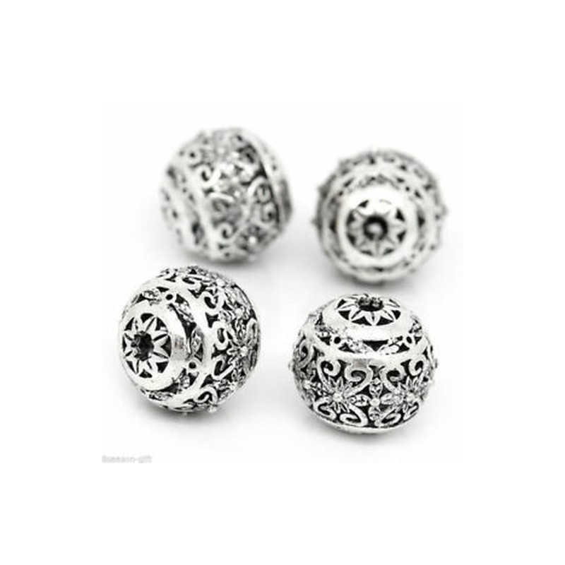10PCs Hollow Flower Spacer Beads Round Ancient silver 11mm x 10mm V2L4