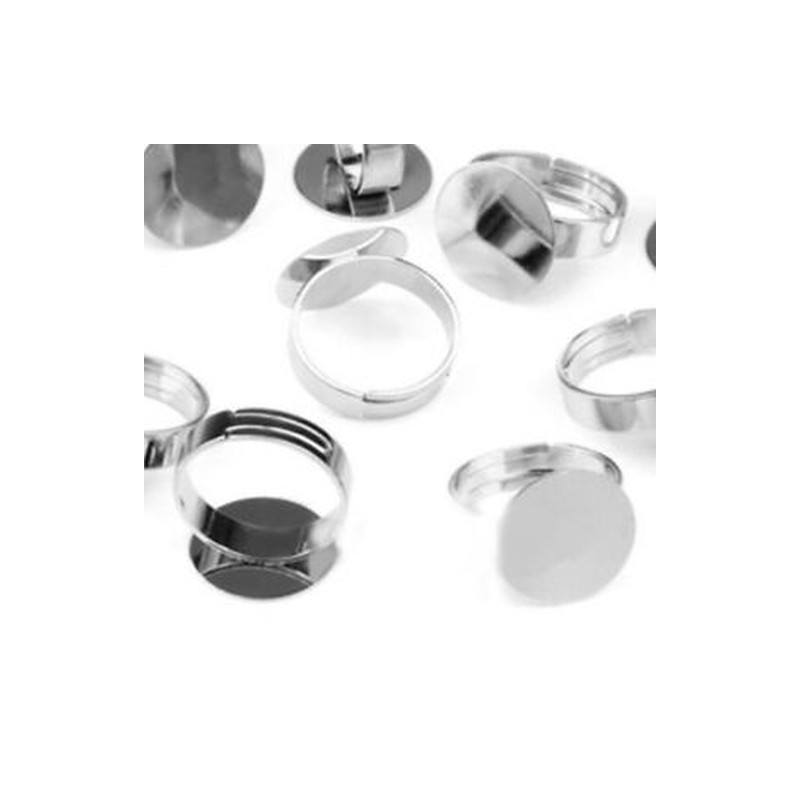 10 Silver Tone GLUE ON Adjustable RING Blank Base 16mm HOT