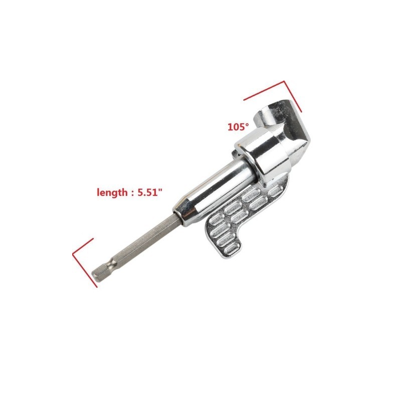 105 Degree angle extension, perfect handy tool for hard-to-reach areas, 360 Degree parallelly adjustment. It can connect hand drill and manual wrench.