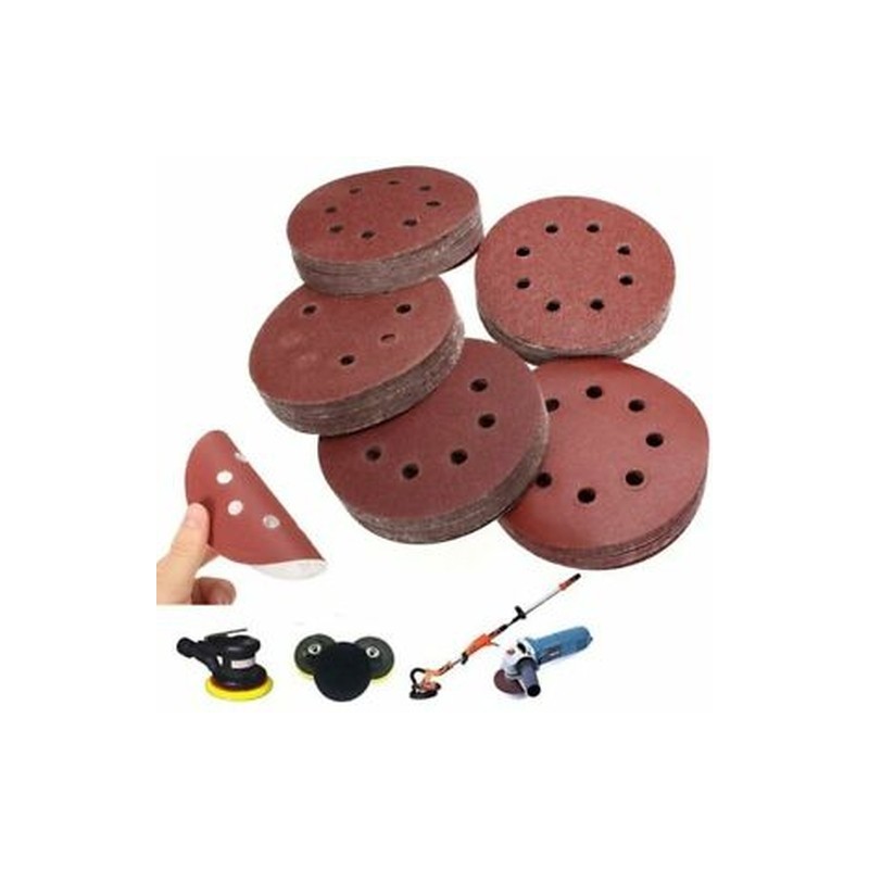 1X(100Pcs 5in Sander Disc 60/80/100/120/240 Grit Sandpaper Sheet Hook Loop C7E7