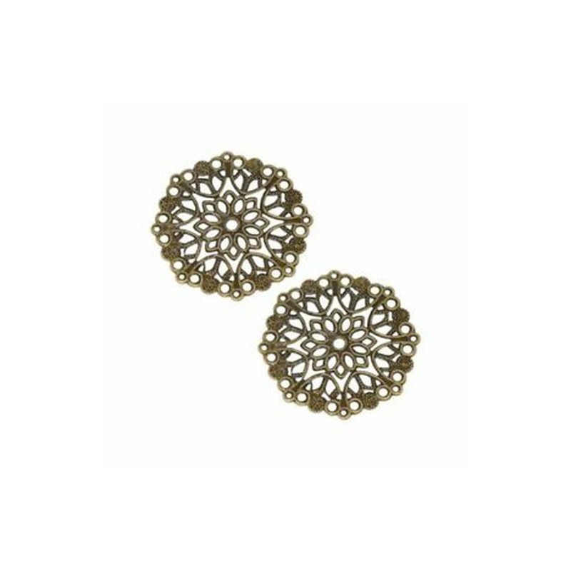1X(50 Bronze Tone Filigree Flower Wraps Connectors 35mm H9N1)