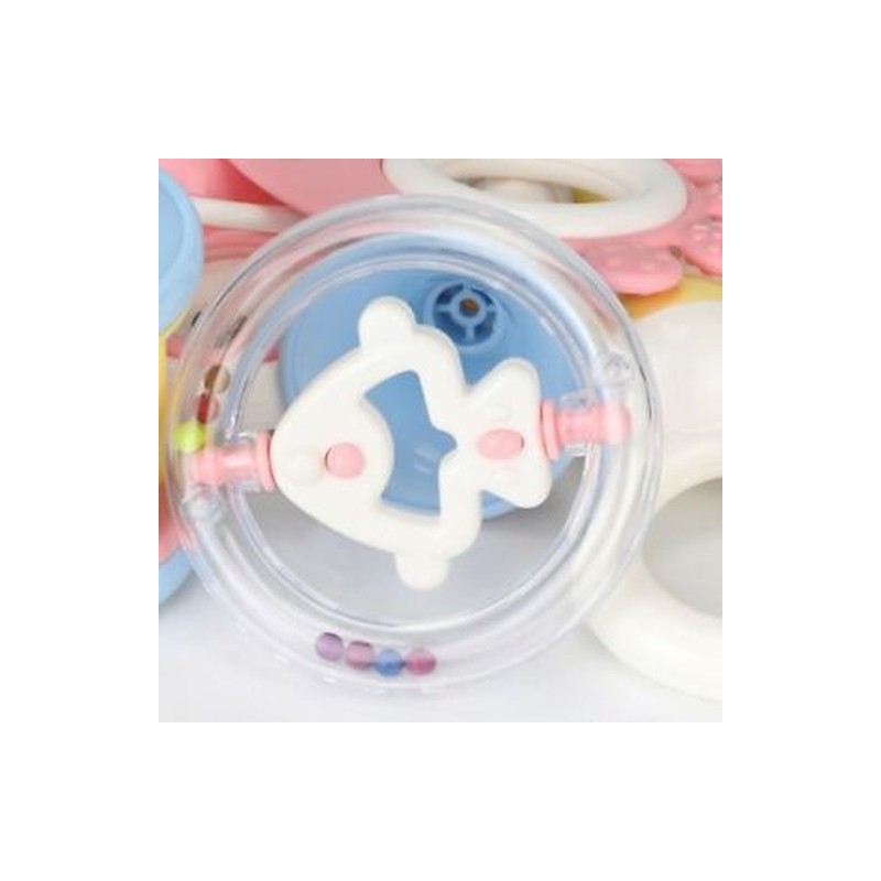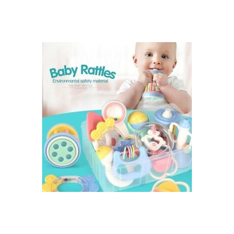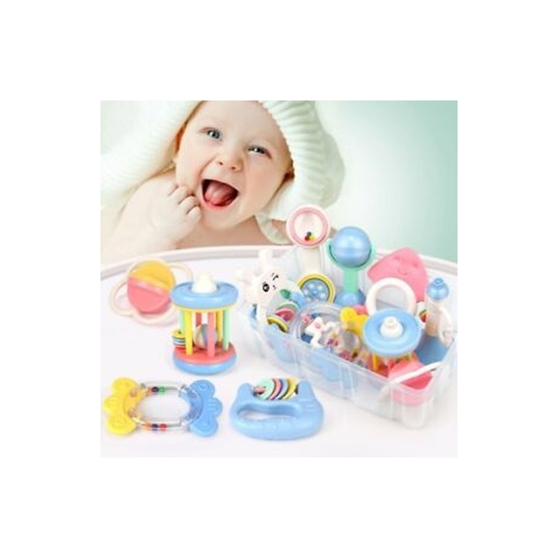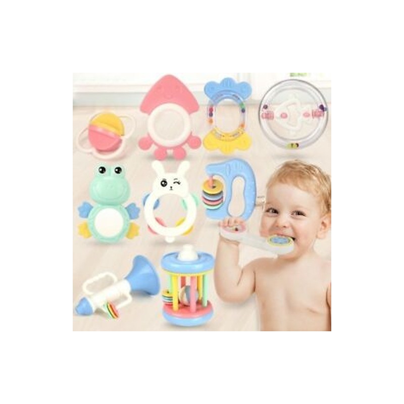 Rattles set a total of 12 fun different cartoon styles, soft colors, clear sound, very popular with the baby. Soft teethers can slow down the baby tooth are not comfortable during the growing season.