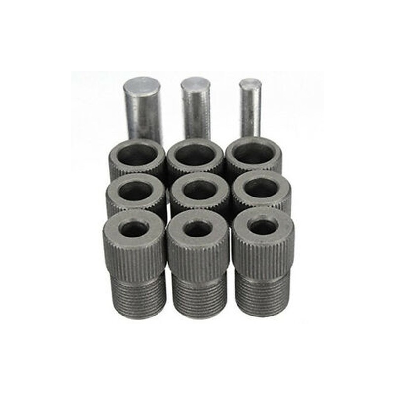 9 Drill Sets (3 kinds of specifications): 9 threaded drill sleeve with 60 CRV bearing steel, high strength and accurate positioning.