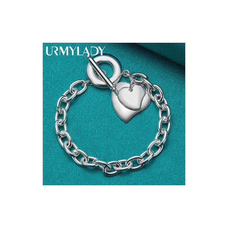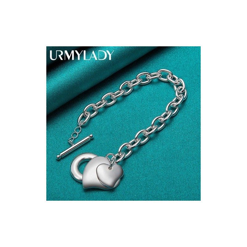 URMYLADY 925 Sterling Silver Double Heart Pendant Bracelet For Women Wedding Party Charm Jewelry