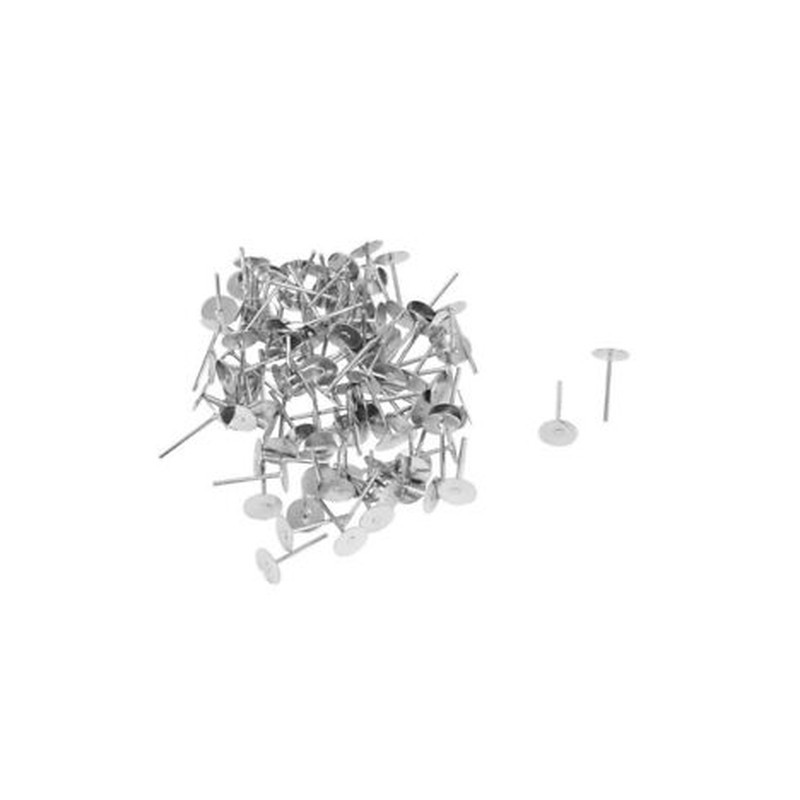 2X(100pcs Silver 6mm Flat Pad Earring Posts Studs Findings D2Q1)