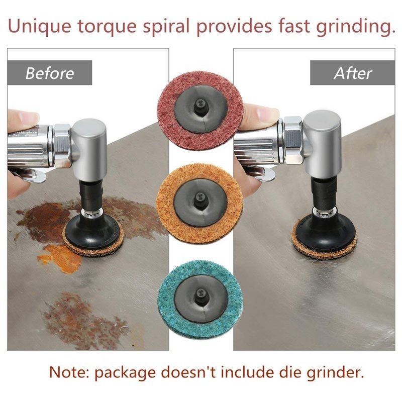 (High performance for various jobs) with 1/4 inch shank disc holder, 30pec fine/medium/rough cutting disc for various surface adjustment and pretreatment, paint removal, rust removal, glue or adhesive Removal, self-sharpening, sanding, cleaning, grinding, peeling, deburring, polishing, finishing, etc.