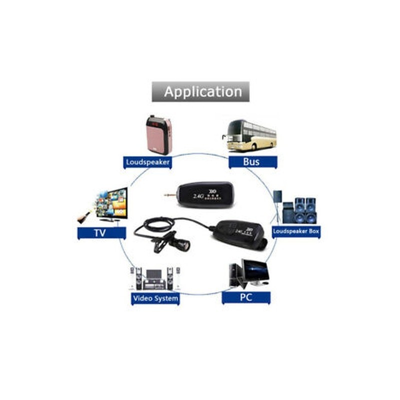 High tech: adopt international 2.4G Wireless transmission, continuous frequency. Automatic match. The distance rang is within 49ft in open field without drop of the frequency at 360 degree, it can work with pc/ laptop/ voice amplifier/ camera/ multimedia/ smartphone and etc.