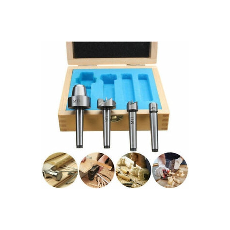 2X(4pcs MT1 Wood Lathe Live Center And Drive Spur Cup MT1 Arbor with Wooden Z5O3
