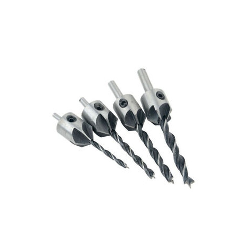 4PCS HSS 5 Flute Countersink Drill Bit for drilling pilot holes for screw sizes 3mm, 4mm, 5mm, 6mm.