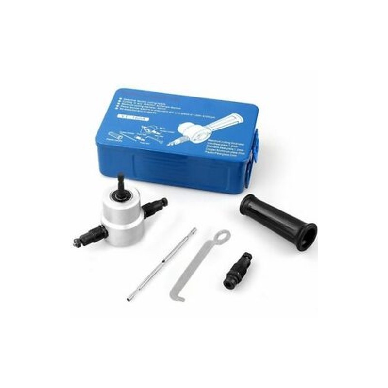 THIS DUAL HEAD AIR METAL: nibbler cutter is to be used with an electric drill or air drill. Capable of cutting any kind of thin metal.