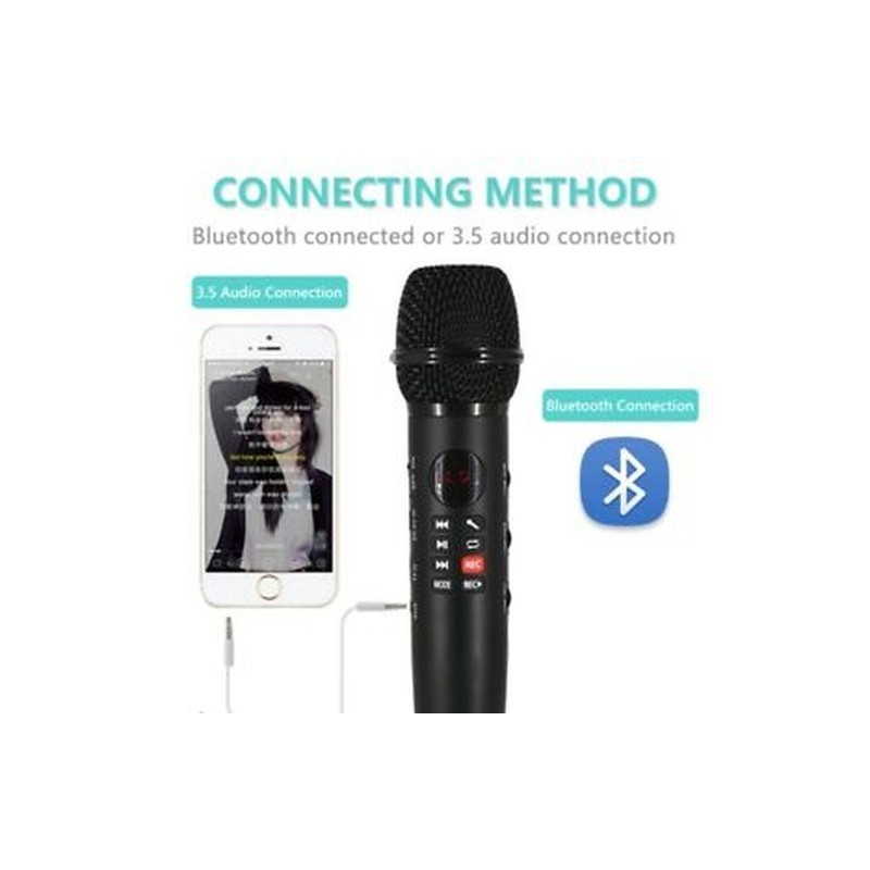 Wireless Bluetooth microphones connected to all 3.5 mm audio equipment,such as Android smart phone,smart TV/PC,apple iphone and the tablet,as well as other Bluetooth devices..With the APP,you can experience the effects of KTV karaoke rooms and functions.