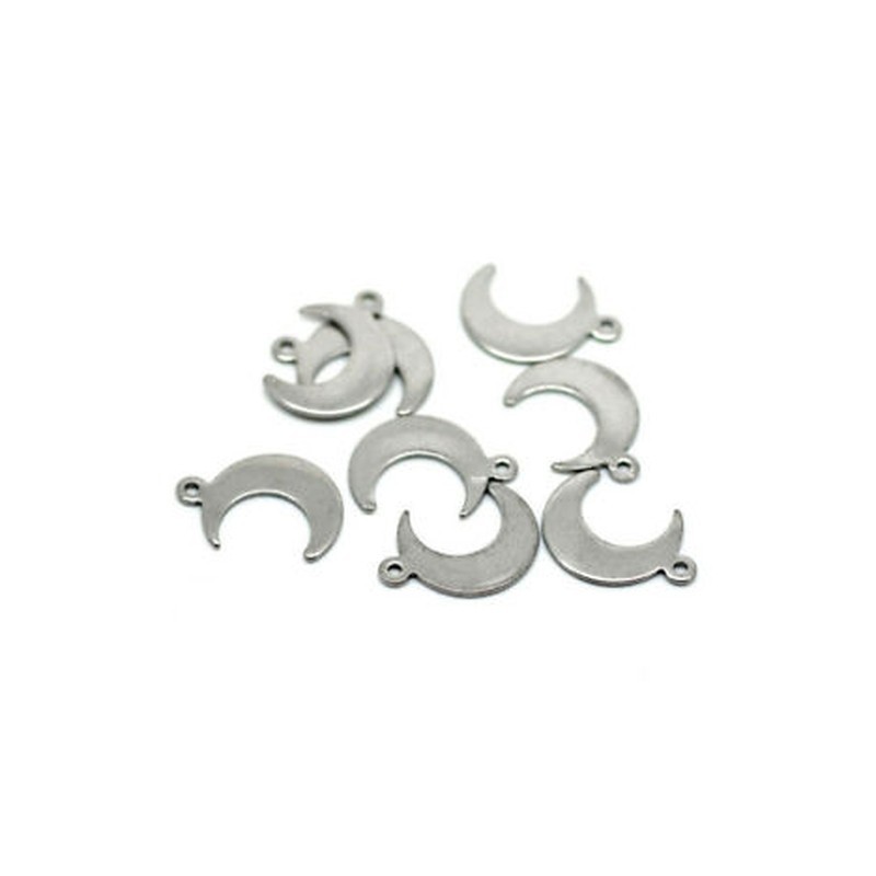 30PCs Gift Silver Tone Stainless Steel Moon Charm Pendants 16mmx12mm L5H7 J7P8