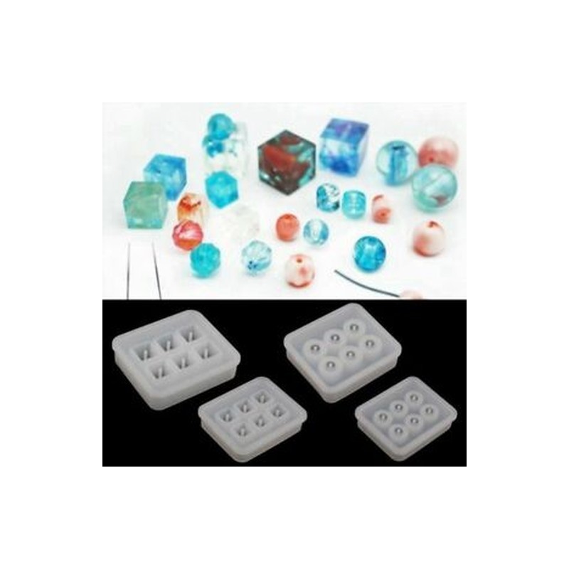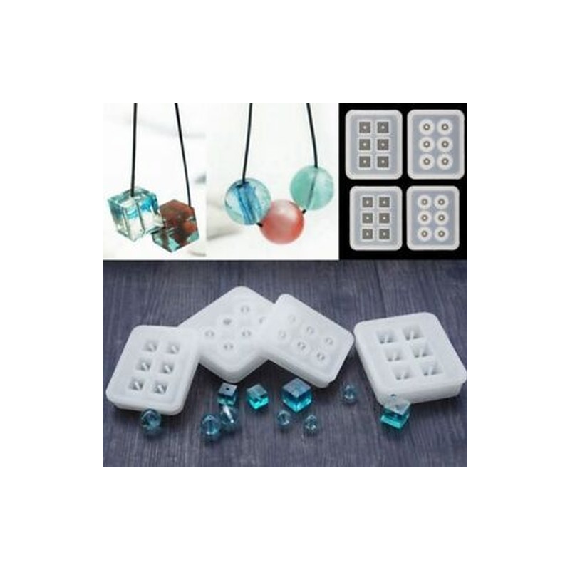 4Pcs Round Square Silicone Bead Mold Mould with Hanging Holes for Jewellery P A6I7