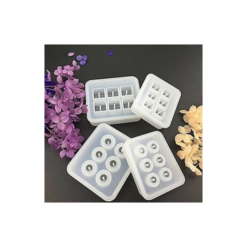 4Pcs Round Square Silicone Bead Mold Mould with Hanging Holes for Jewelry P A6I7