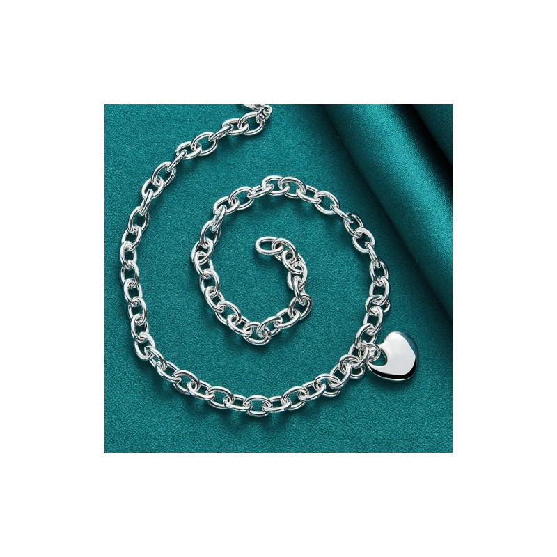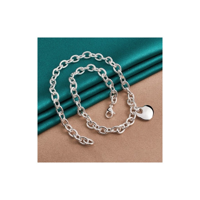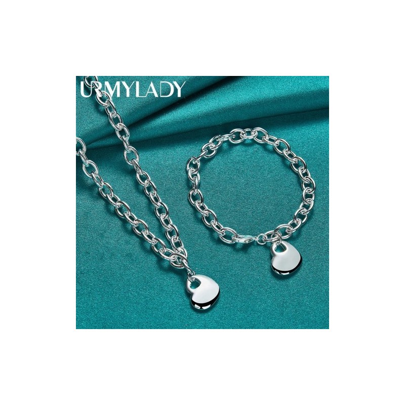 URMYLADY 925 Sterling Silver Solid Heart Bracelet Necklace Jewelry Set For Women Fashion Charm Wedding Party