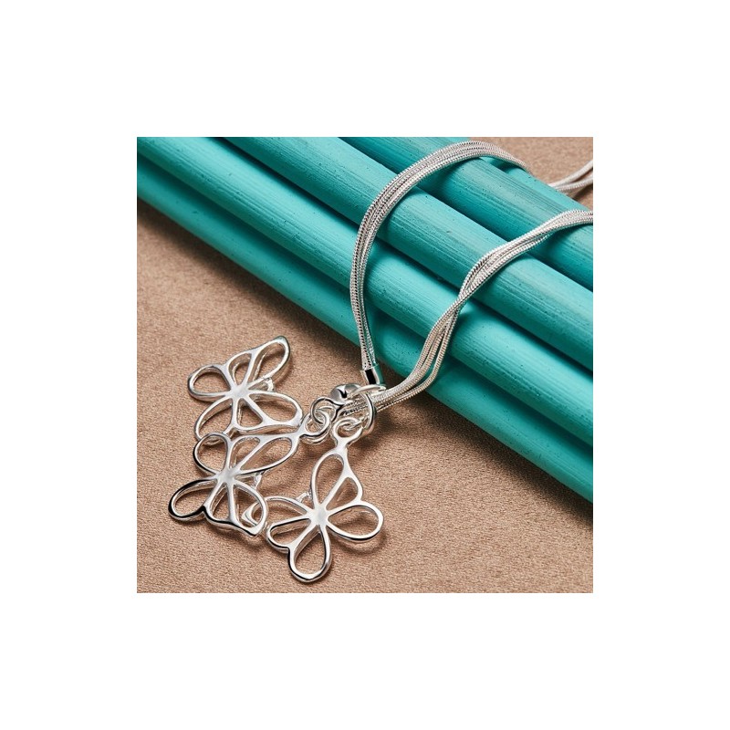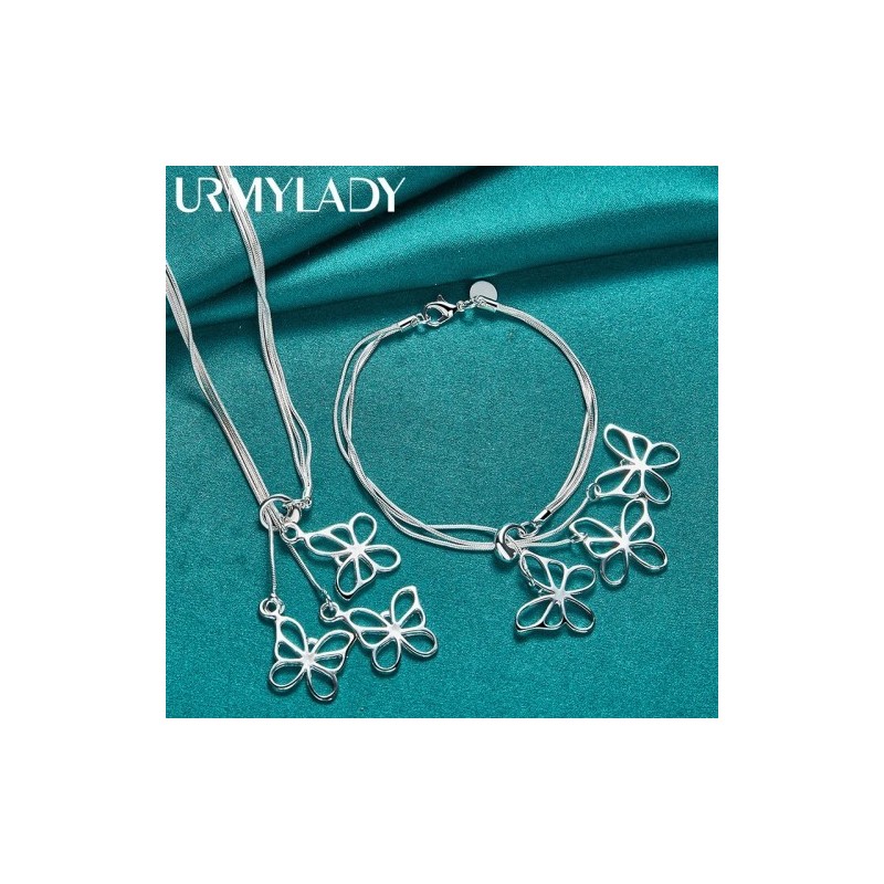 URMYLADY 925 Sterling Silver Butterflies Pendant Necklace Bracelet Set For Women Wedding Party Fashion Charm Jewelry