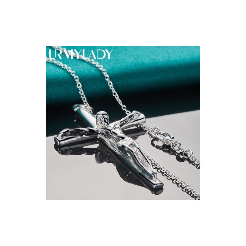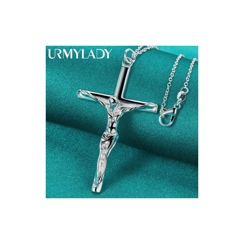 URMYLADY 925 Sterling Silver Cross Pendant 16-30 Inch Necklace Chain For Women Wedding Engagement Jewelry