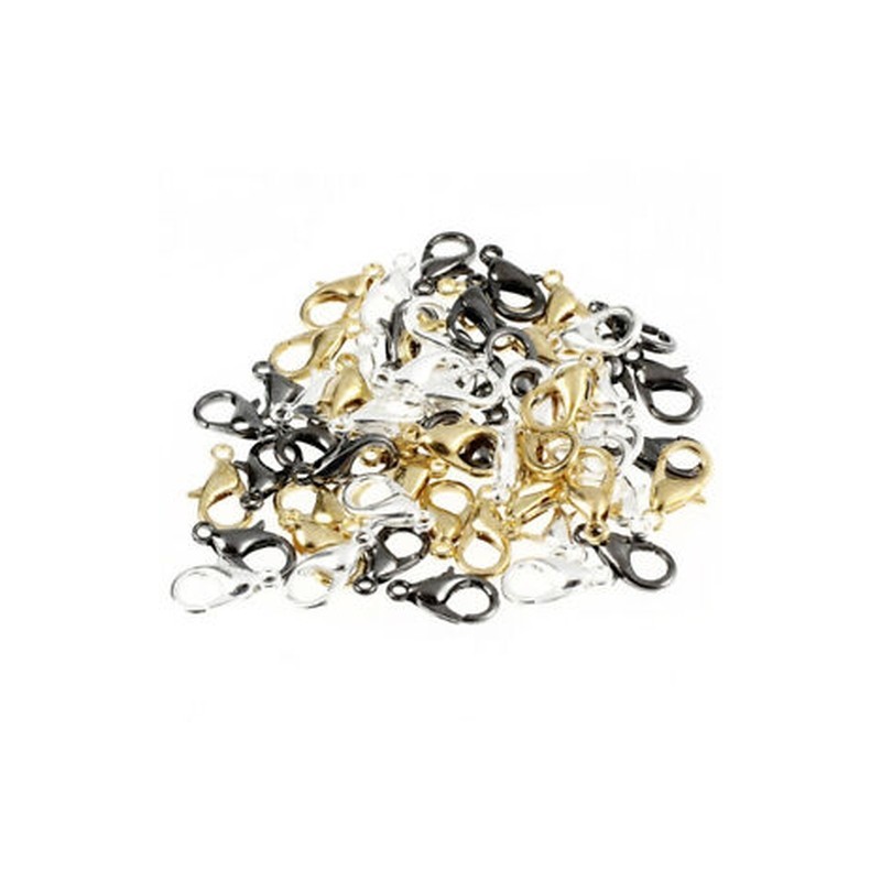 60-Piece Mix Lobster Claw Clasps for Jewellery Making 12mm Silver Gold Black Q5E9