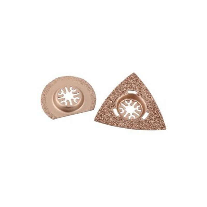 1pc 32mm(1-1/4 inch) Bi-metal saw blade, best for cutting: hardwood, softwood and all other wood materials even with nails. Also very suitable for plastics and drywall. Bi-metal teeth, offset, high cutting speed. Extremely durable and robust.1pc 10mm(3/8 inch) E-cut standard saw blade, best for cutting: wood, laminates, softer plastics, drywall, fiberglass. Enables easy plunge cuts into the material at any spot.