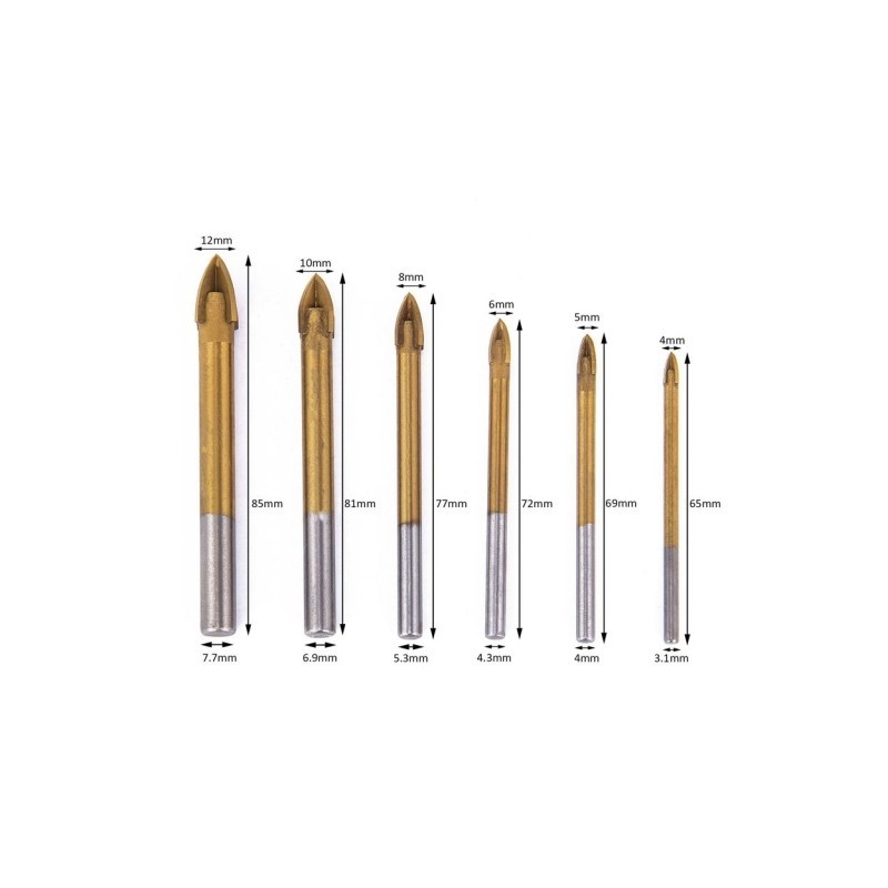 6X(6pcs Titanium Coated Glass Drill Bits Set 4 Cutting Edges Cross Spear He X2E4