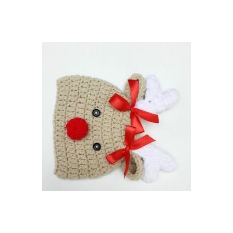 6X(Cute Cartoon Newborn Infant Crochet Knitted Christmas Deer Baby Hats For E8H8