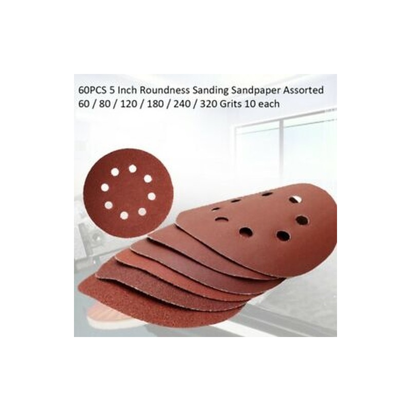6X(Grinding Wheels 60 Pieces Of Sandpaper, 5-Inch Roundness Sandpaper 60/80 Y1U1