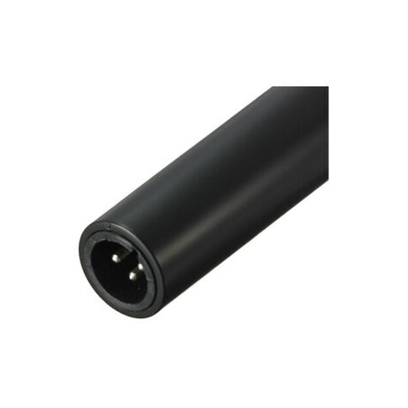 Make sure the battery is not in the Microphone. And plug the cord to the microphone and your audio amplifier.