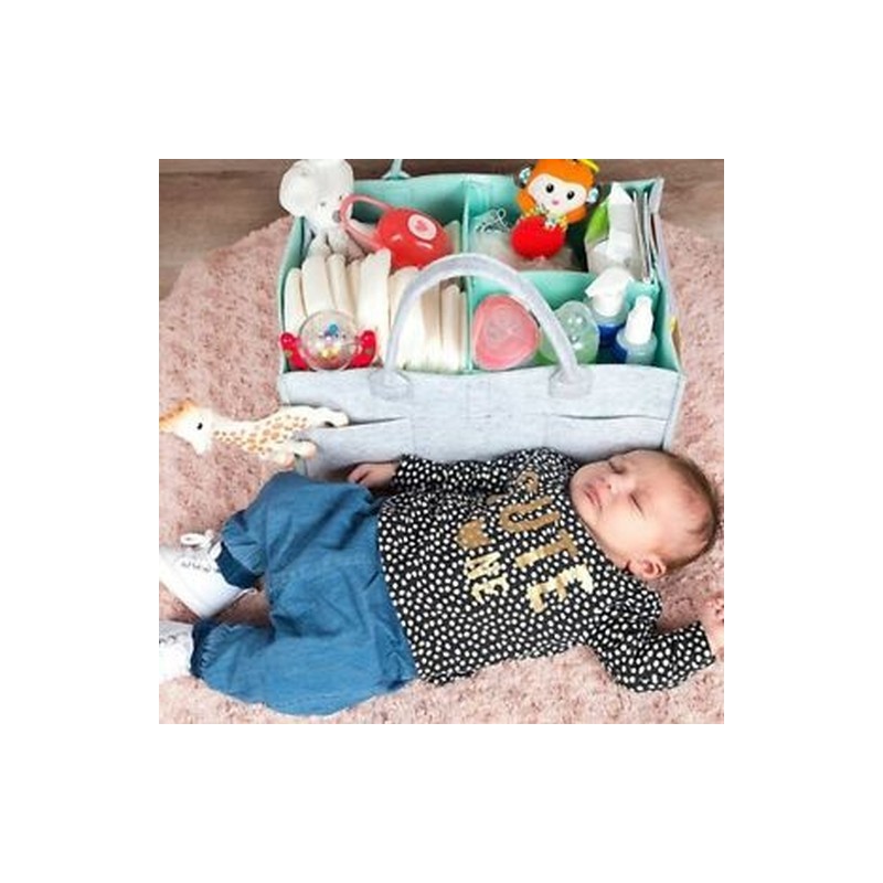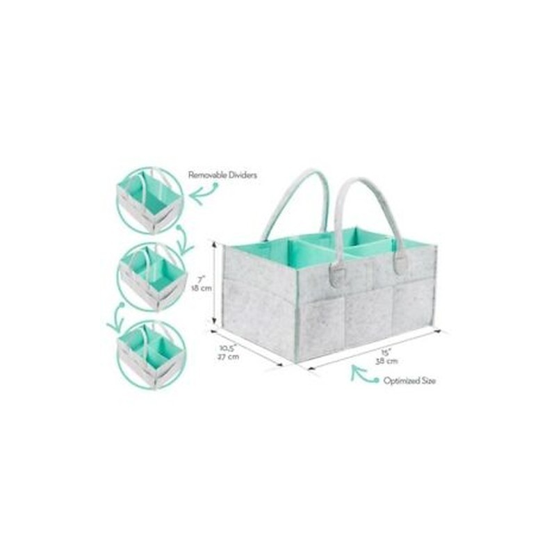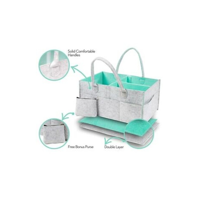 9X(ORGANISE NEWBORN PRODUCTS, INCLUDES A BONUS: Our modern unisex caddy organiser is built with quality felt fabric, soft Press edges and includes removable organising inserts. Store all essentials such as nappies, wipes, burp cloth, lotions, toys, bibs, teethers, medicine, changing pads, breast pump, books and many more, in one place! Plus a BONUS purse to store smaller items.