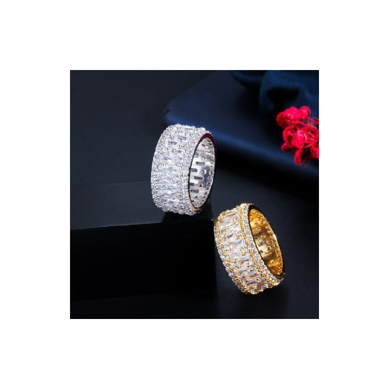 CWWZircons luxus, teljes köbös cirkónia burkolt sárga arany színű nagy kerek gyűrűk nőknek, esküvői zenekar ékszer R171