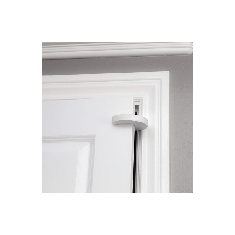 SIMPLE DESIGN, EASY TO USE: The simple C shape design,suitable for 0.75-1.75 inch thickness doors.Just pull the two ends apart and attach to the edge or top of the door.Please keep them out of reach from kids.You can hang it on the door handle when you don`t need it.