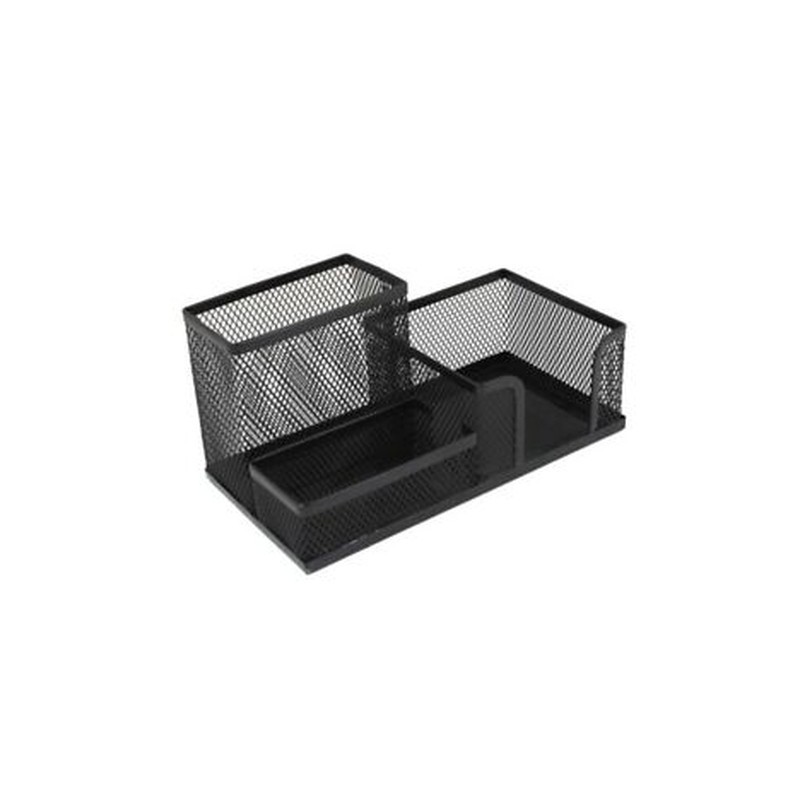 Made of metal material, 3 compartments design, black mesh style pen holder.