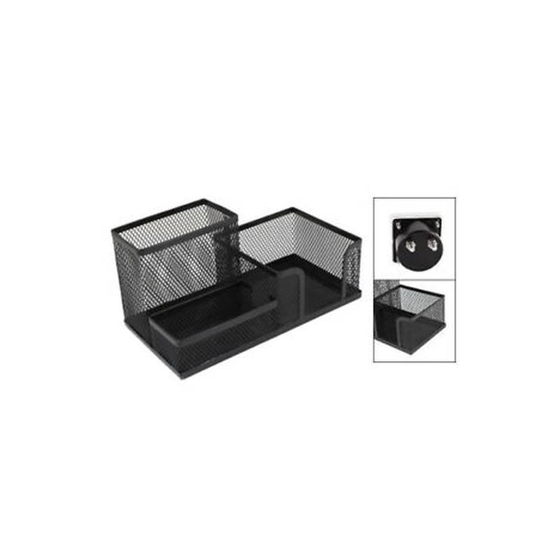 Students Office Desk Mesh Style 3 Compartments Metal Pen Holder Black P5N7