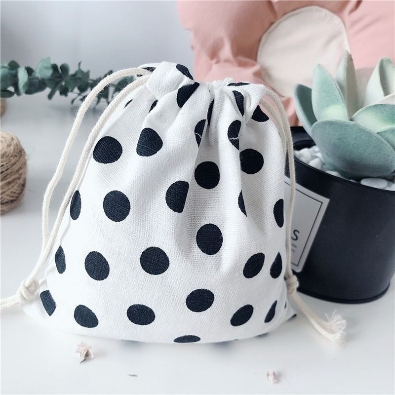 1 PC Women Drawstring Bags Pouch Dot Printed Lipstick Coin Money Candy Storage Bag Food Packaging Bags Christmas Gifts Pouch