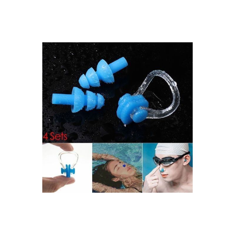 4 Sets Reusable Unisex Durable Swimming Nose Clip Earplug Diving Water Pool