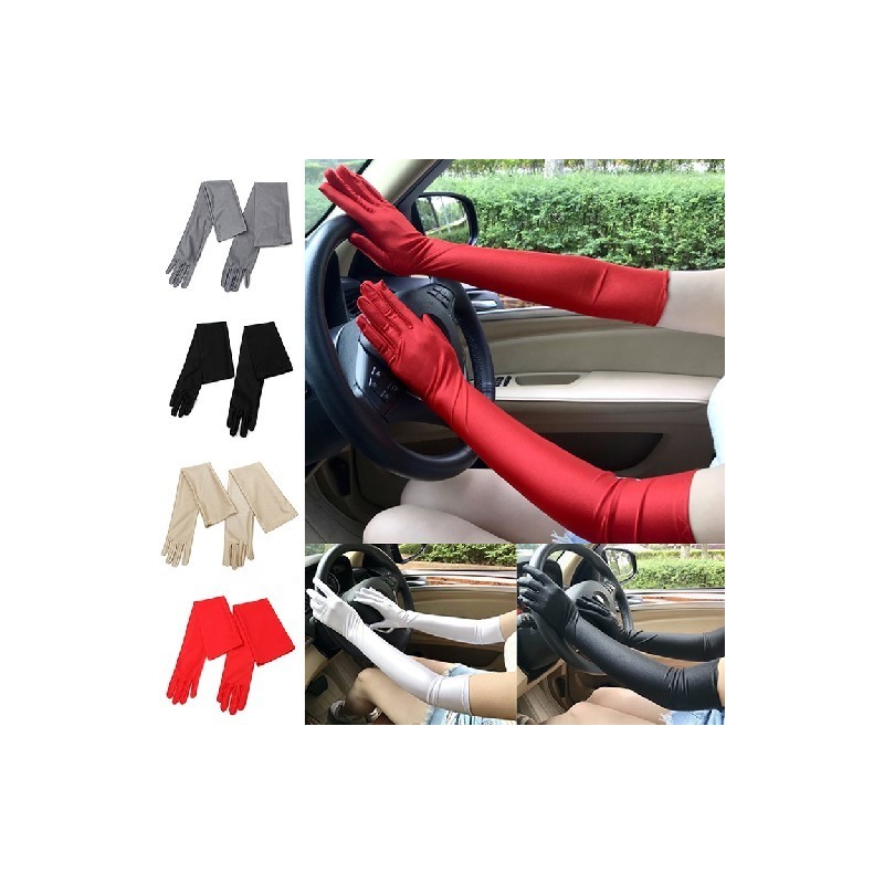 Sunscreen UV Full Finger Driving Gloves Long Satin Elastic Etiquette Gloves Women White Wedding Dress Party Prom Gloves Mittens
