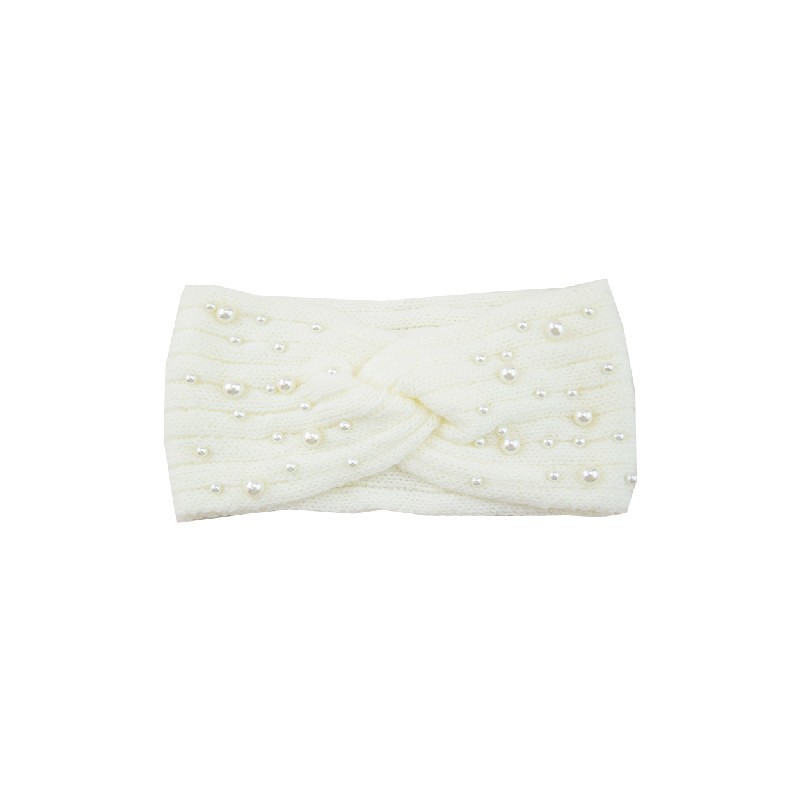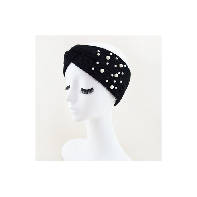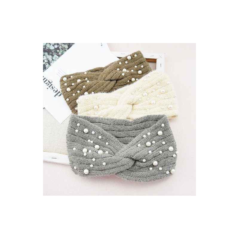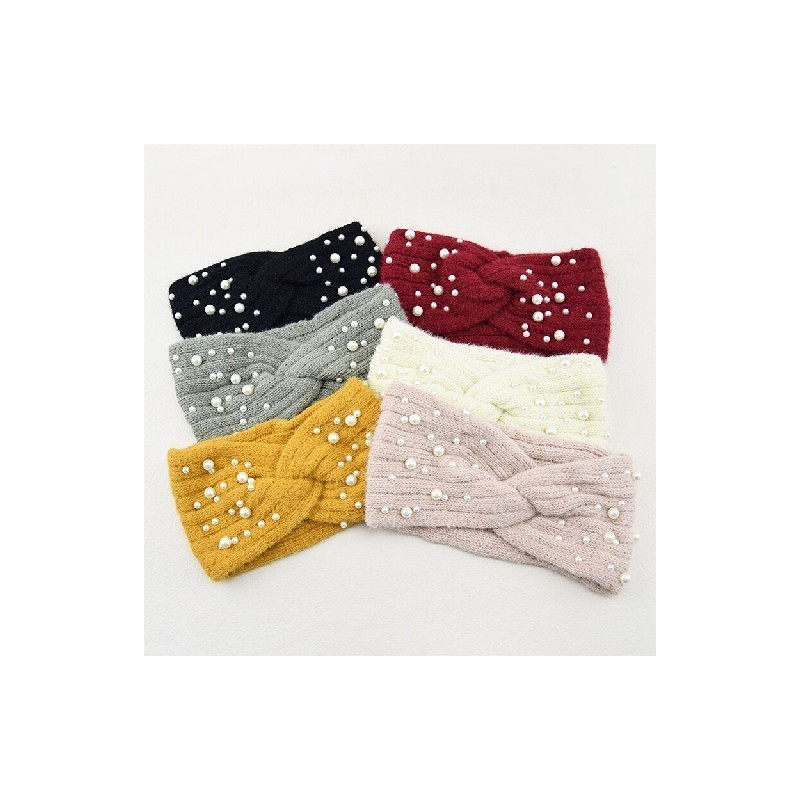Handmade Pearls Knitted Cross Headband Women Wide Hairbands Autumn Winter Female Ear Warmer Windproof Ear Protection Head Cover