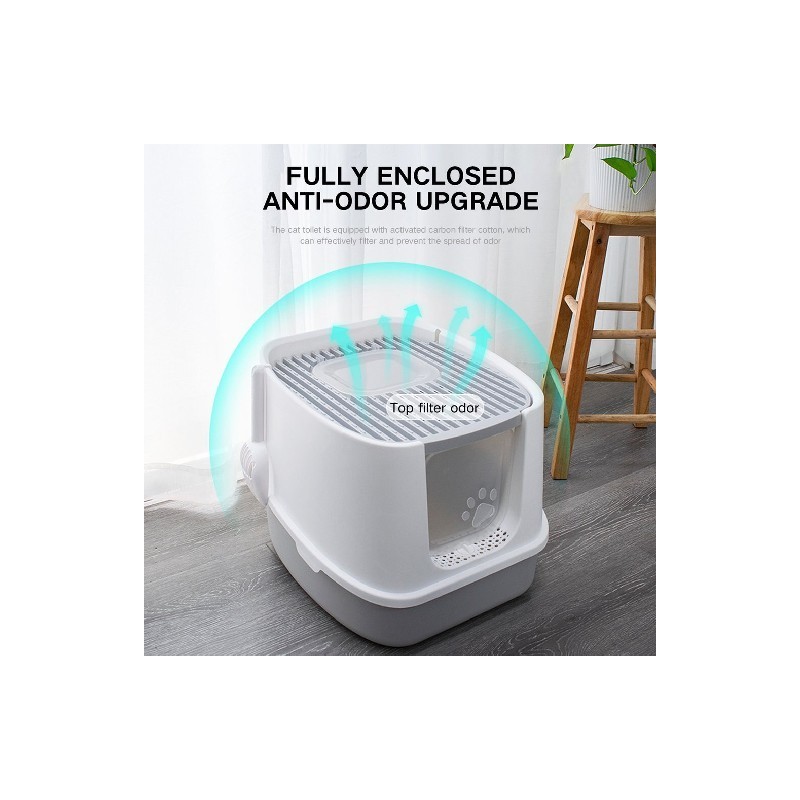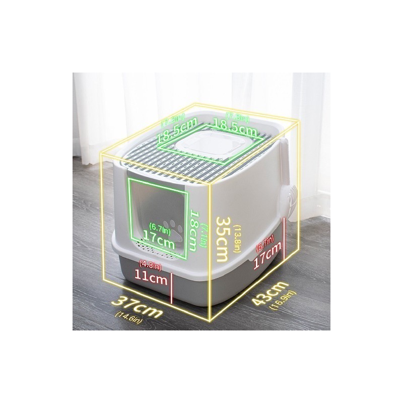 1. Fully Enclosed Design: The interior of this tray is large enough to allow your cat to turn and move around freely inside, ensuring comfort even for long stays. The bottom-in and top-out litter tray prevents your cat's urine from splashing out, allowing it to fall back naturally and eventually be absorbed by the litter. It also provides a good air barrier to prevent cat odors from wafting inside the tray, providing a latest living environment for you and your pet to grow up healthy.