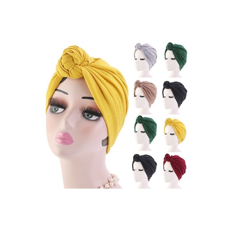 Women Stretch Turban Hat Bohemian Style Head Wrap Knot Turban African Twist Headwrap Ladies Hair Accessories India Hat Chemo Cap