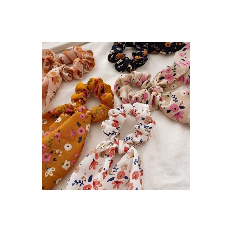 Spring Ponytail Scarf Elastic Hair Rope for Women Floral Printed Streamers Hair Bow Ties Scrunchies Lady Hair Bands Accessories