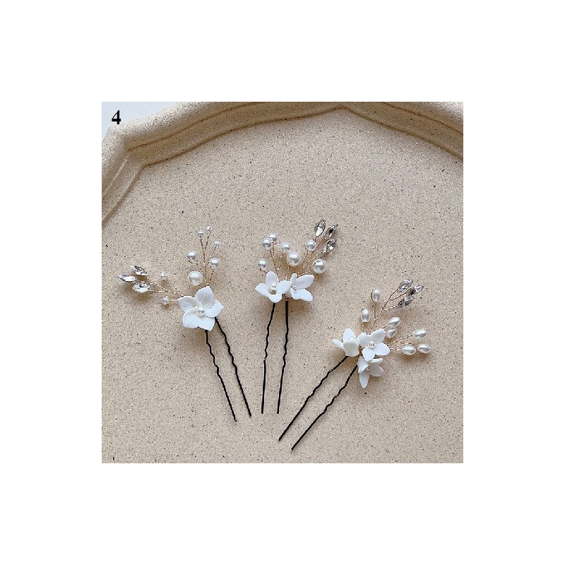 Bridal Hairstyle Crystal Hair Jewellery 3Pcs White Flower U Shaped Hairpin Pearl Elegant Hair Forks Wedding Hair Clips Headpieces