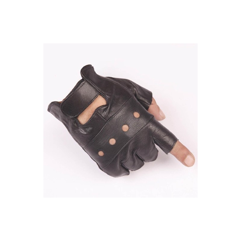 1Pair Men Outdoor Black Soft Leather Driving Motorcycle Biker Fingerless Gloves