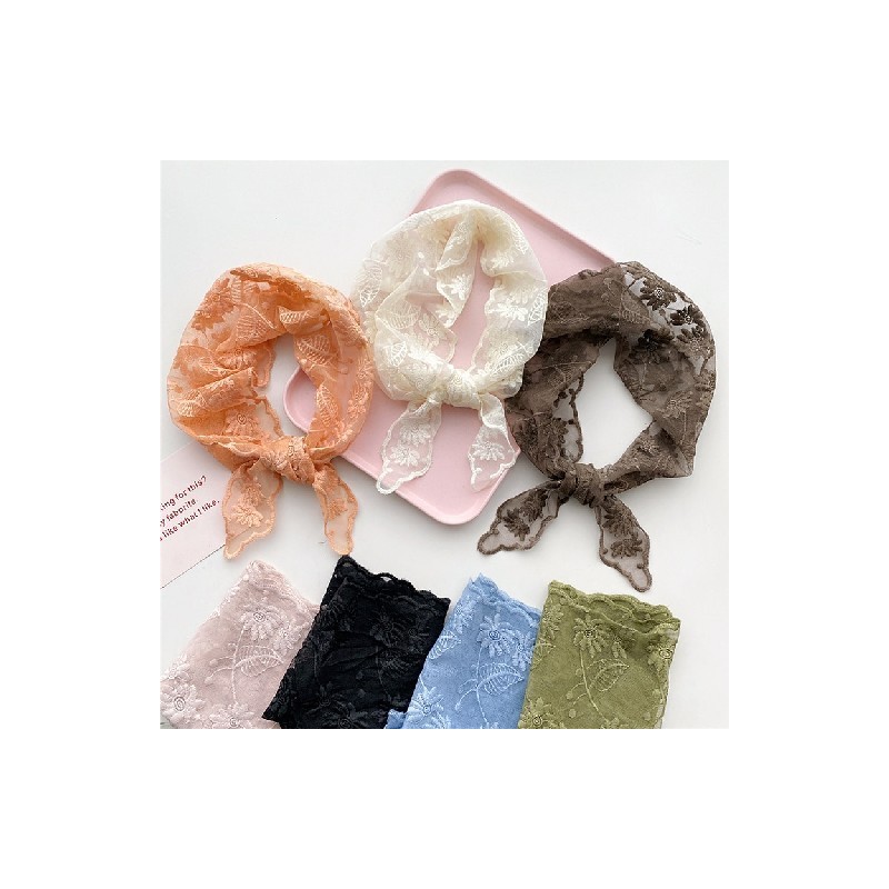 Harajuku Lace Floral Women Triangular Scarf Shawl Bandana Women Flower Embroidery Head Neck Scarf Handkerchief Foulard Cheveux