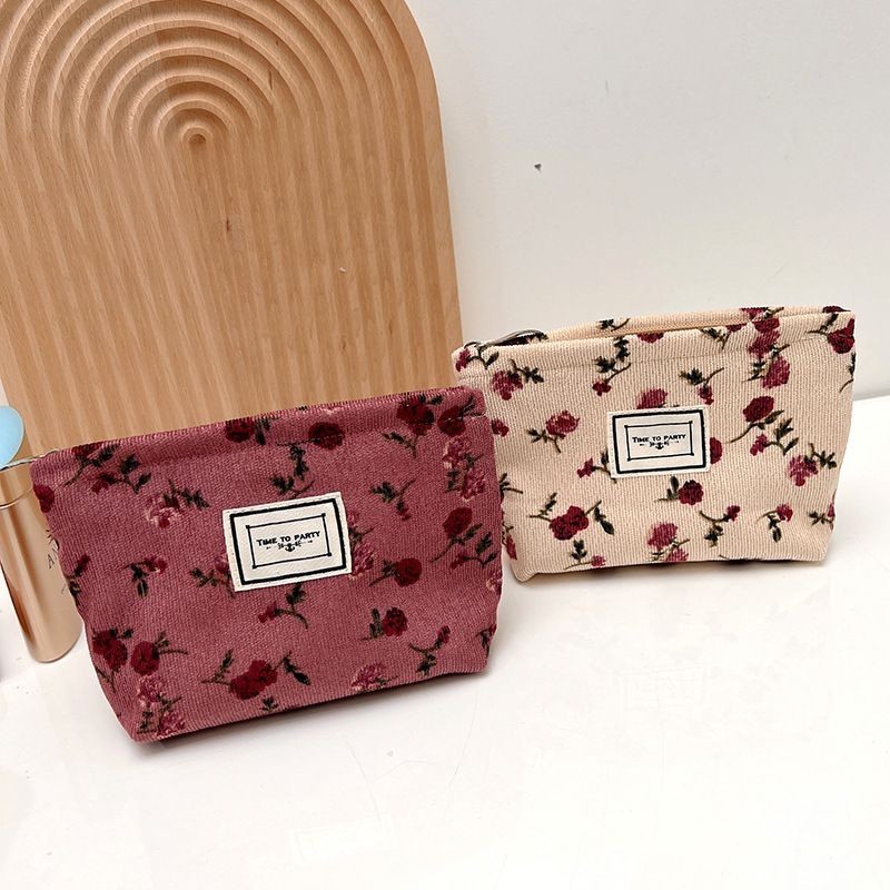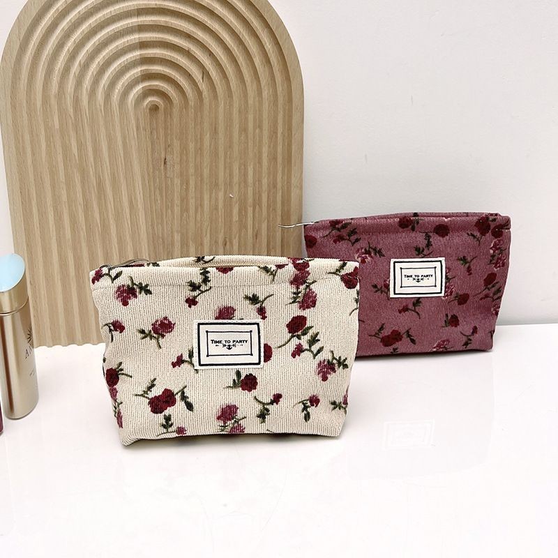 Women Corduroy Cosmetic Bag Cotton Cloth Makeup Pouch Hand Travel Bag Lipstick Organizer Cases Fashion Zipper Clutch Phone Purse