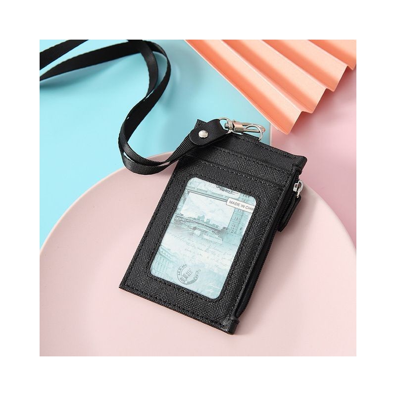 Pu Leather Coin Money Wallet Short ID Business Credit Card Holder Wallets with Neck String Small Purse Money Bag for Women