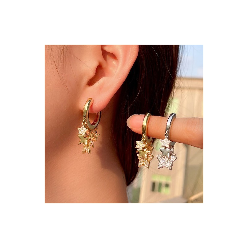 CWWZircons Glitering CZ Brazilian Gold Tassel Lucky Star Endless Huggie Hoop Earrings with Charm Women Summer Boho Jewellery CZ892
