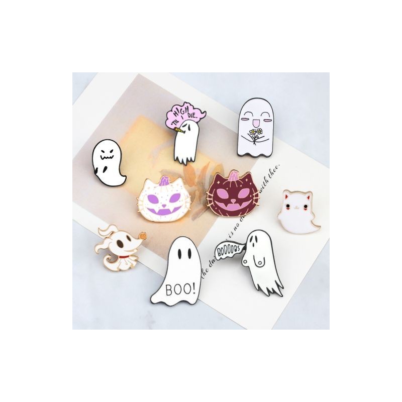Halloween Party Enamel Brooches for Women Men Cute Ghost Pins Badges Cartoon Spooky Pet Clothes Pin Kids Backpacks Jewellery Gifts