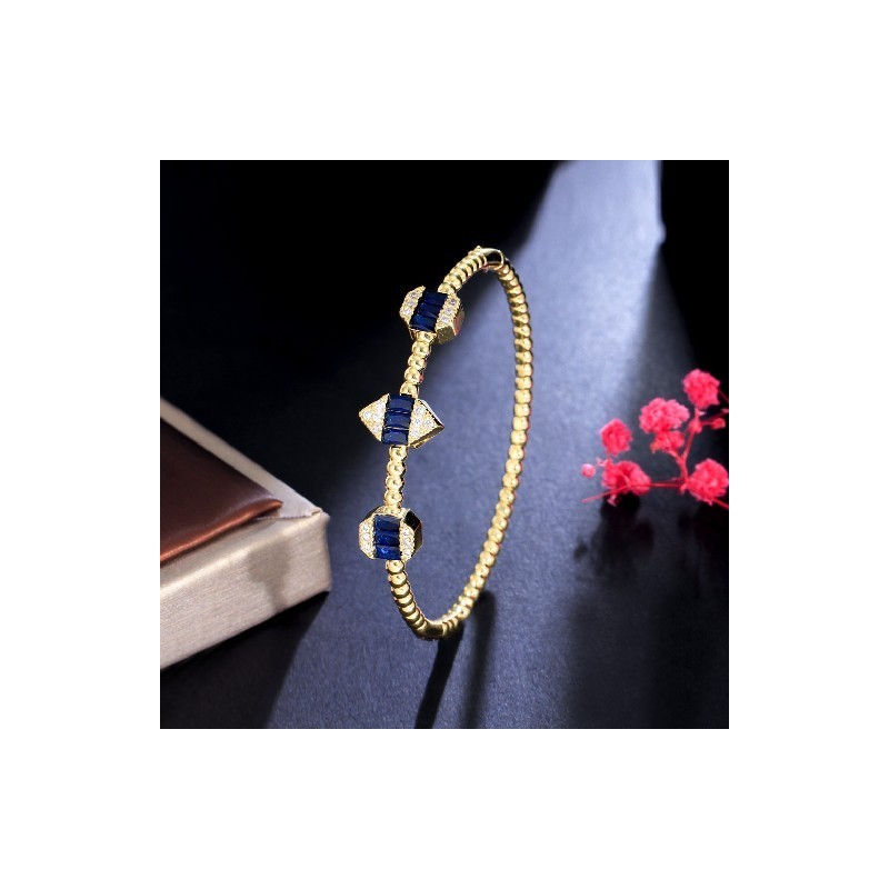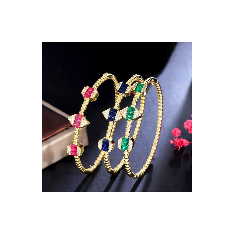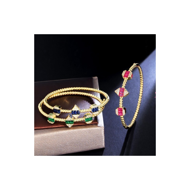 CWWZircons Trendy Green Blue Cubic Zirconia Open Bangle for Women Chic CZ Gold Plated Engagement Party Jewellery Accessories BG049