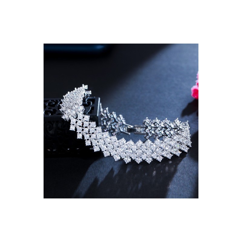 CWWZircons Bling Cubic Zirconia Luxury Round Tennis Bracelet for Women White Gold Plated Wedding Bridal Party Jewellery Gift CB282