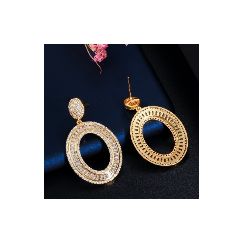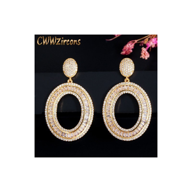 CWWZircons Full Cubic Zirconia Paved Glitter Yellow Gold Color Round Dangle Drop Earrings for Women Bridal Wedding Jewellery CZ598